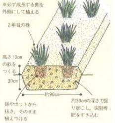 | 花後すぐに、株分けする 葉の長さを25cm位にする |
