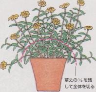 8月中旬に草丈の妬くらいまで切り戻すと新芽が再び発生し、9月中旬からの開花がよりきれいで、