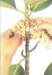 | 最先端の葉まで開ききった ころ(伸びが止まったころ) 枝先を穂木として用いる。 まだ伸長中のころだと 枝先部が特にやわらかく, しおれやすいのて向かない |