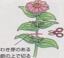 花がら摘みを兼ねて切り戻し 観賞期間を過ぎた花を摘み取る際には、数節下で切り戻すと、側杖の発達が