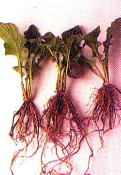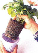 ●鉢から抜く。根詰 まりを起こして いる。 |