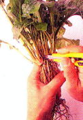 ●土を落として芽 の数と位置を 確認1株を2〜3芽 に分ける |