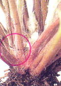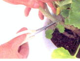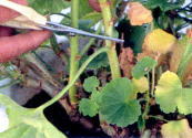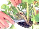 ●芽も枝も出てなければ、葉のすぐ 上で切る。離れた所で切ると 腐りやすい。 |