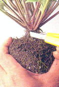 ●根鉢から古土をすべ て落とす 根を傷めない様に |