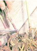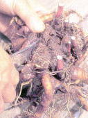 ●作業の必要な株 根詰まりしていても、まだ芽数がそれほど多くない株は、一回り大き